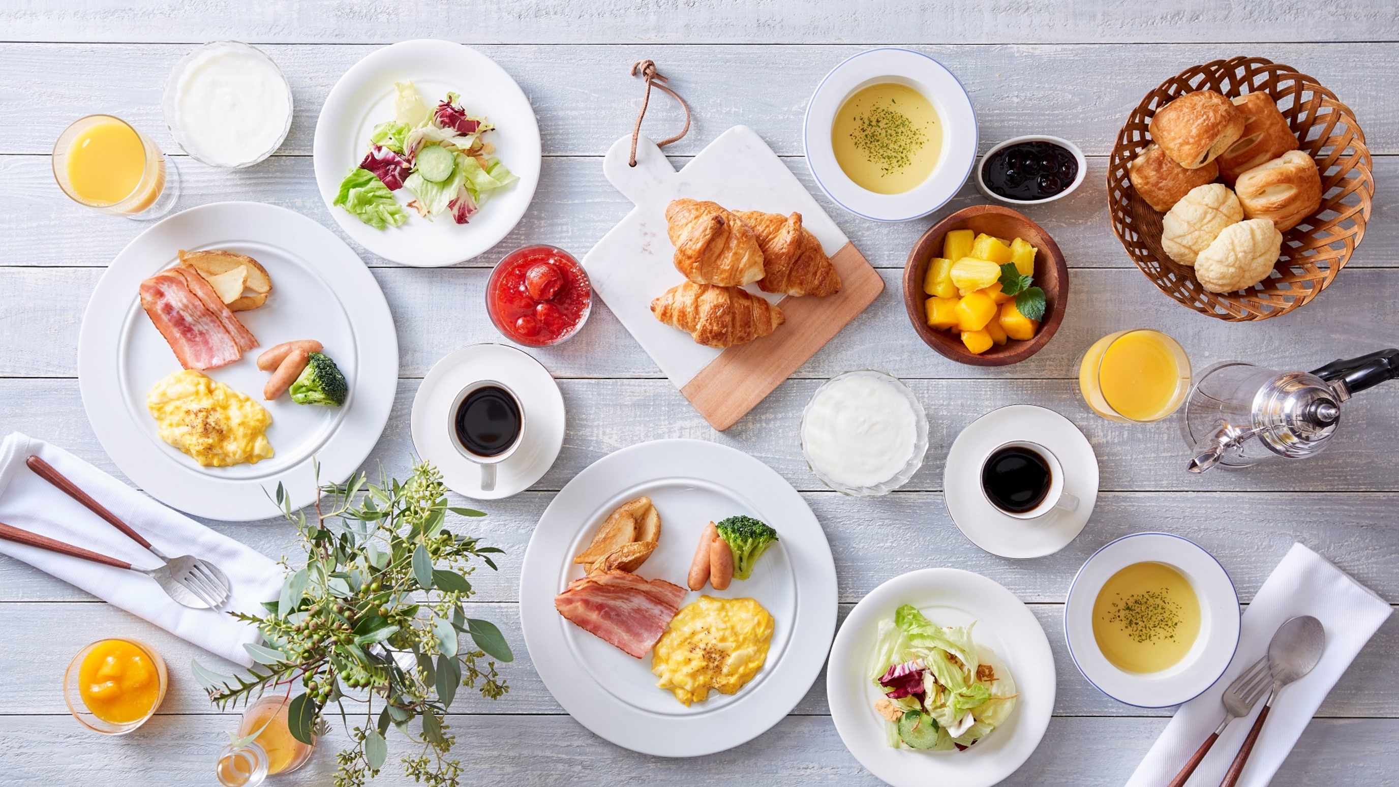 パンケーキやクロワッサン、ヨーグルトなどのデザートも充実。甘いものが好きな人におすすめです