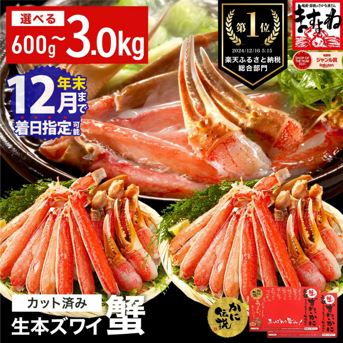 【ふるさと納税】総合1位獲得 10月1日頃寄附額改定↑★年内お届け先行予約受付中★12月31日まで配送指定OK!楽天ふるさと納税ランキング1位【生食可】ますよね 商店の元祖 カット済み 生ずわい蟹 選べる 600g〜3.0kg[最短3営業日以内発送・着日指定可能]お中元 お歳暮 ギフト